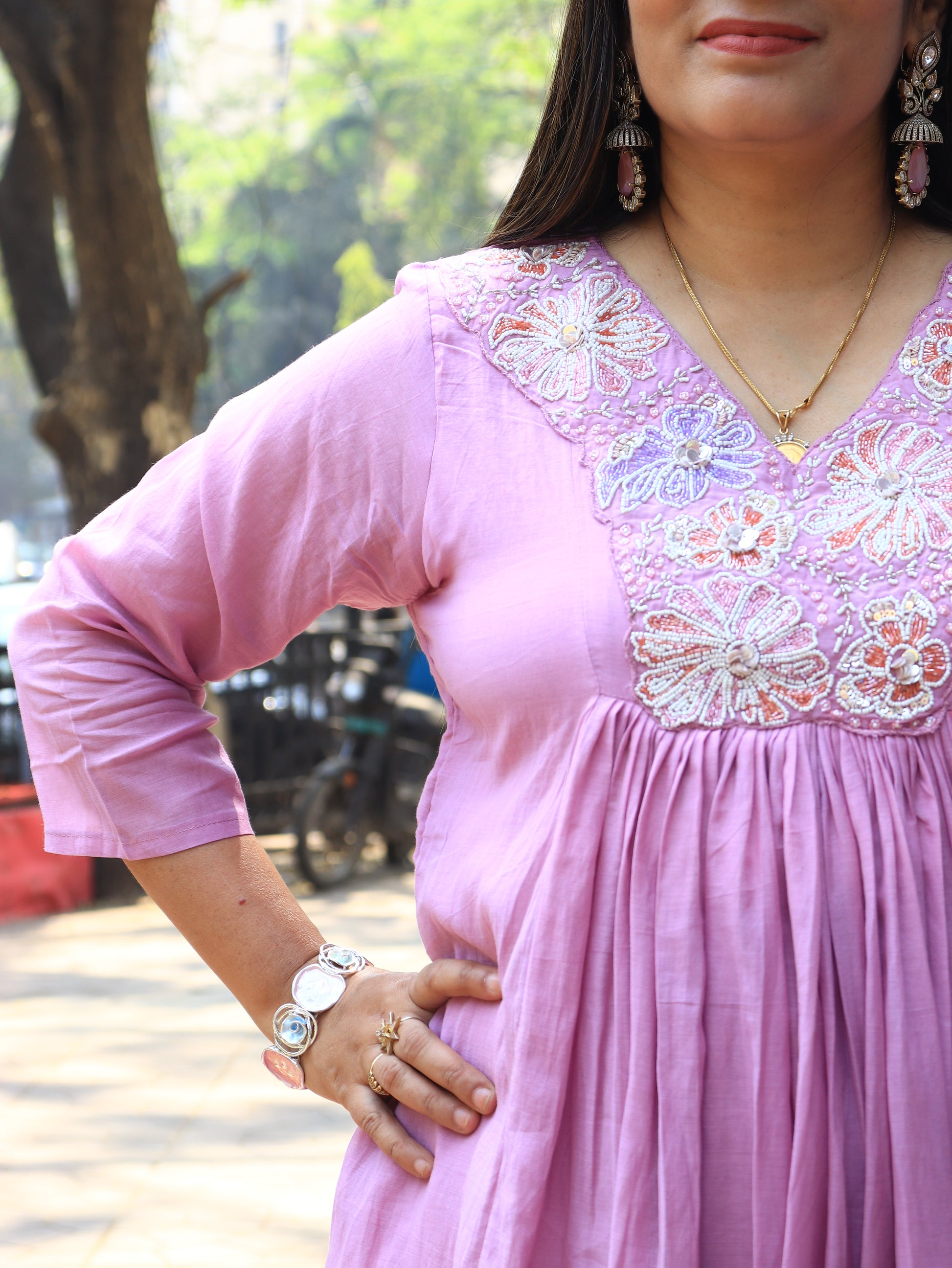 Blossom Grace Anarkali Suit Set – Lavender Pink