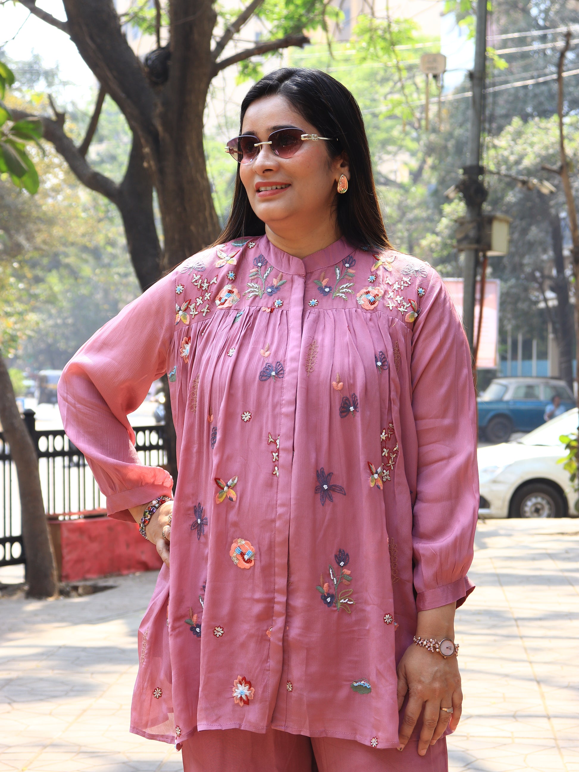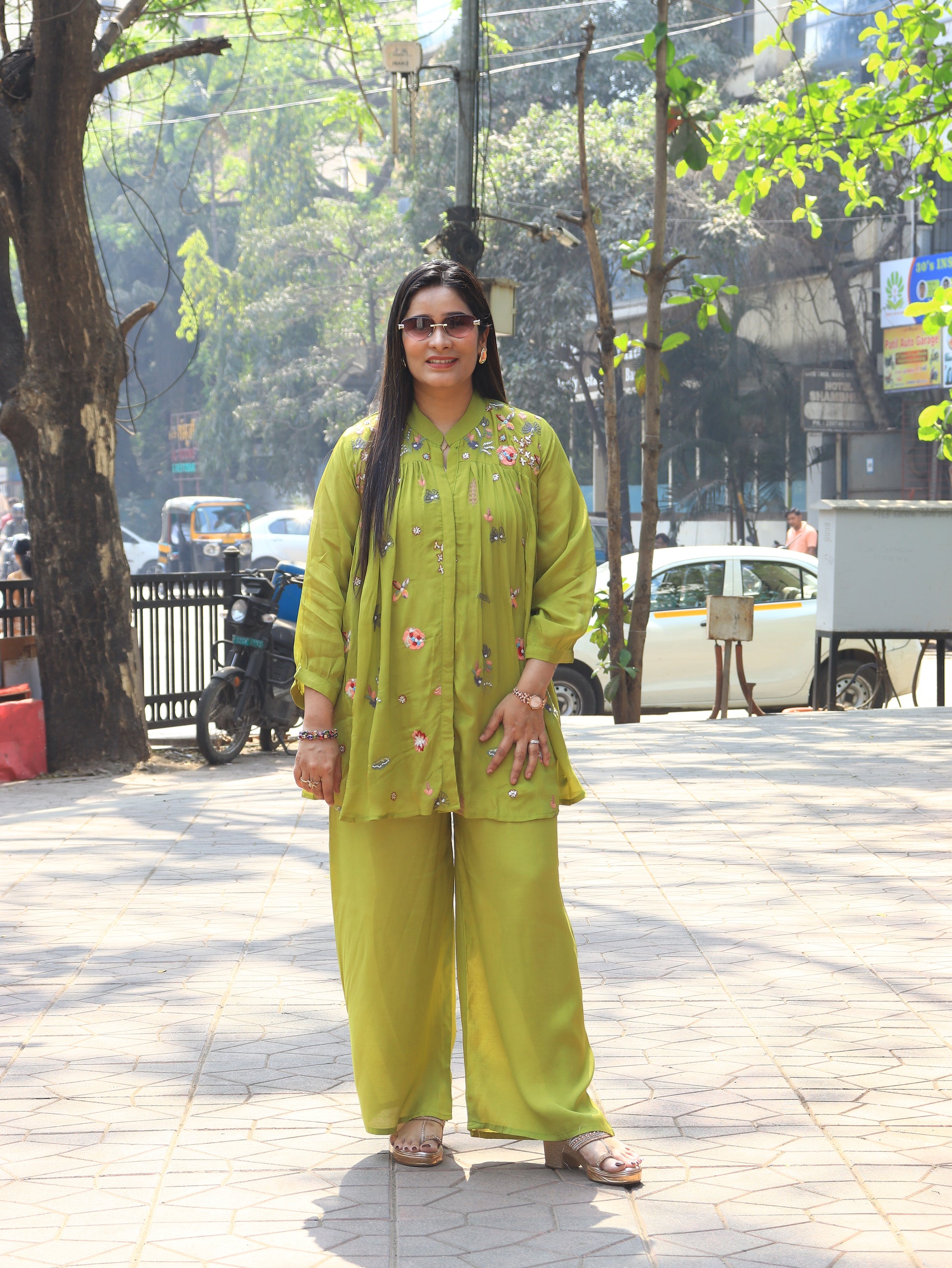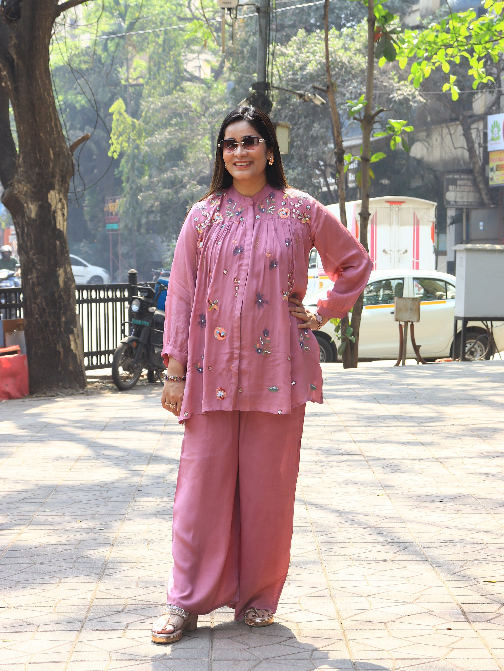 Step into effortless elegance with our Floral Breeze Embroidered Coord Set, designed for modern women who love comfort with style. Crafted in a soft, flowy fabric, this two-piece set features a beautifully embroidered kurta adorned with delicate floral and butterfly motifs, paired with relaxed wide-leg palazzo pants.