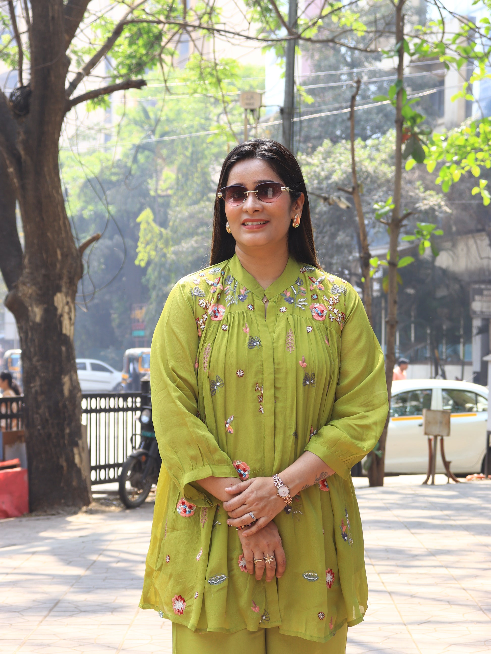 The kurta comes with a chic mandarin collar neckline, subtle front placket, and gentle gathers that create a flattering silhouette. Intricate multicolor thread embroidery adds a fresh, feminine charm, making it perfect for day outings, festive brunches, casual gatherings, and travel wear.