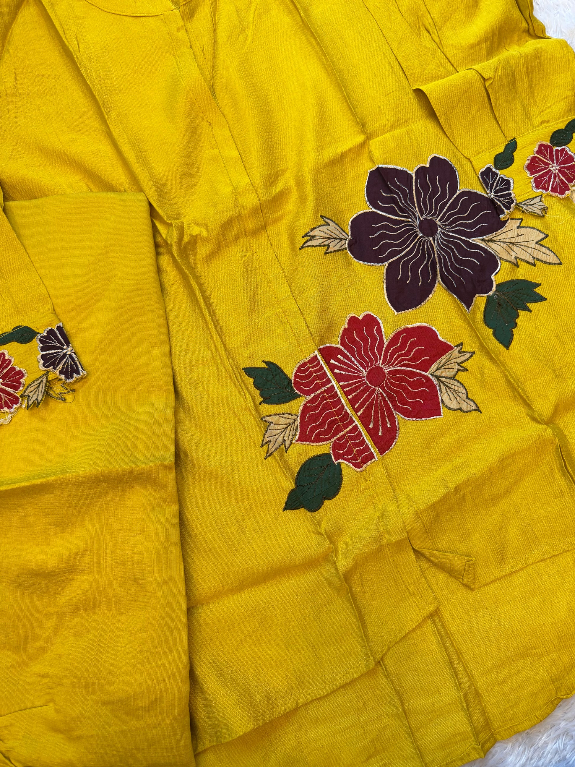 Brighten up your wardrobe with our Zesty Floral 2-Piece Set. Crafted in a radiant shade of yellow, this two-piece ensemble features a relaxed tunic top adorned with bold, statement floral embroidery in rich plum and rouge tones. Paired with comfortable matching trousers, this set is the perfect blend of style and ease. Whether you’re heading to a brunch date or a summer getaway, this outfit ensures you look effortlessly chic.